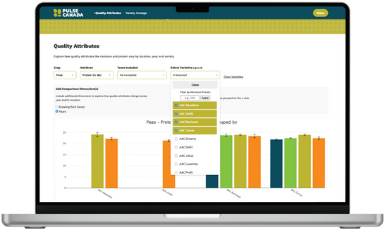 Canada continues to invest in pulse quality research to provide the industry with the tools it needs to stay ahead. The Pulse Quality Dashboard brings together data showing how genetics and environment influence the quality and nutritional attributes of Canadian pulses.